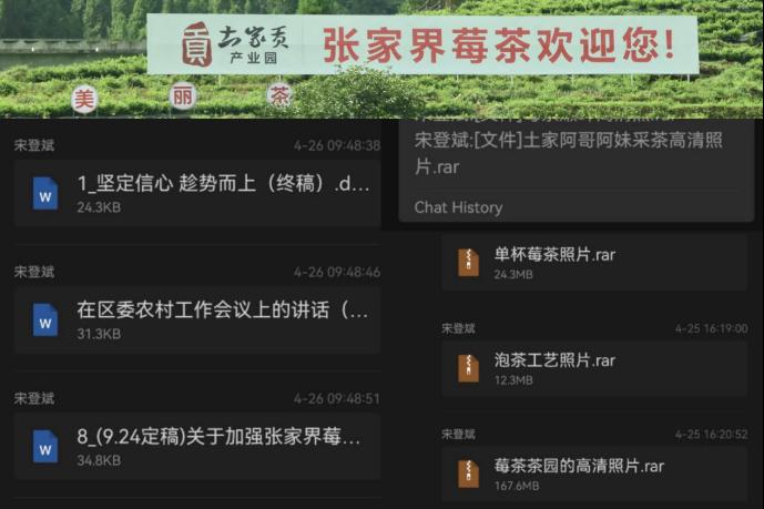 线上调研以通过联系当地莓茶基地负责人为基点,以此渠道了解张家界特色莓茶,主要通过:张家界莓茶产品介绍以及特色、莓茶产业发展状况、莓茶产业发展大会的工作等方面进行了解。调研团成员了解到,张家界莓茶生长于武陵山脉、以张家界为核心区域生长的小叶种显齿蛇葡萄植物,也叫小叶种藤茶。并且,通过与当地莓茶负责人的线上交流,成员们了解到张家界莓茶历史悠久,原为土家族常用民族药物,被当地人称为:土家甘露,长寿藤,神仙草。张家界永定区是莓茶主要产地,在与莓茶基地联系人交流过程中,当地基地负责人对队员所提出的问题进行解答,并表示欢迎队员们的线下调研。