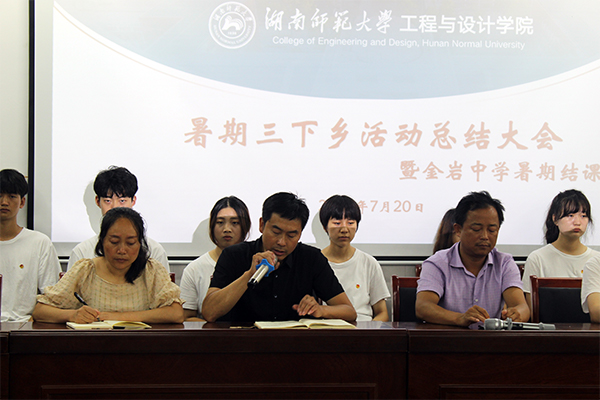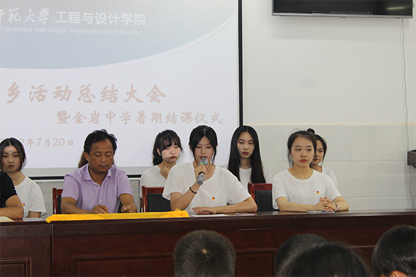 (通讯员 葛敏 何巧玲)为期十五天的暑期三下乡社会实践活动已经结束,为了给这次活动画上一个完美的句号,总结经验与不足,2022年7月20日下午,夏乡之源——太阳成集团tyc工程与设计学院赴张家界慈利县暑期社会实践团在张家界慈利县金岩土家族芙蓉学校召开了暑期三下乡活动总结大会暨金岩中学暑期结课仪式。此次总结大会由金岩中学的主任覃兰春主持,与会人员包括实践团全体队员、金岩中学的校长彭云华和校长莫才忠以及金岩中学三至六年级约180名学生。