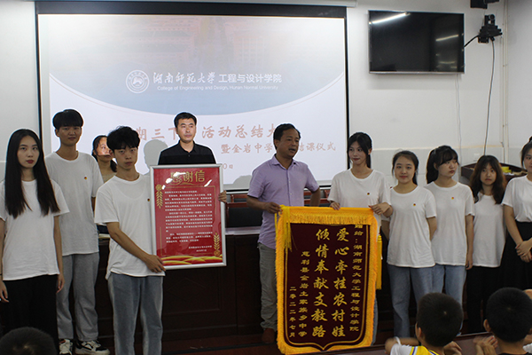 校长给实践队颁发锦旗与感谢信