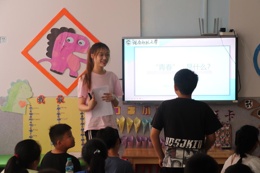 张若婷从“青春”和“使命”的含义和联系出发,以五四运动和新冠疫情中中国青年们的责任担当为例,告诉孩子们要珍惜青春年少,肩负历史重任,推动实现中华民族伟大复兴。李冰倩以红军长征为立足点,鼓励孩子们学习长征精神,把自己的人生理想与祖国、时代和人类命运联系起来,勤奋学习,立志成才。