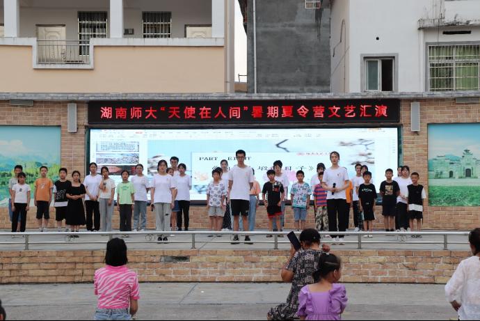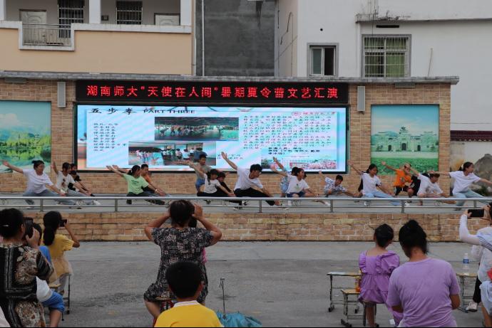 (通讯员 戴思 于淼)为展示“天使在人间”支教老师以及大塅镇学生的精神风貌,7月18日傍晚,医学院“天使在人间”暑期社会实践团队于大塅中心小学露天舞台策划组织举办暑期文艺汇演。当地政府领导及大塅镇中心小学学生、家长受邀前来观赏。夏令营全体同学和老师参与汇演。团队成员张若婷、朱鑫平担任活动主持人。