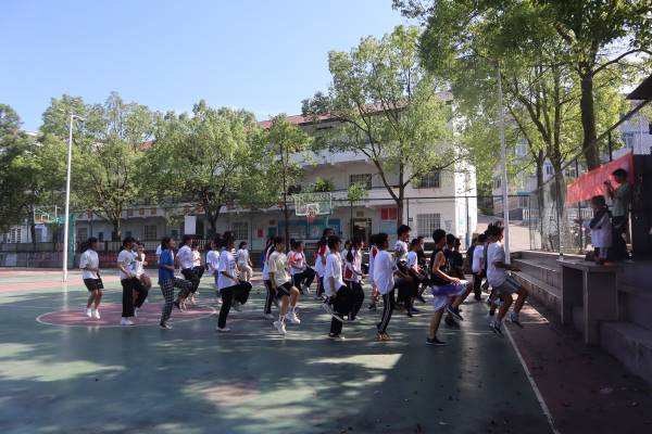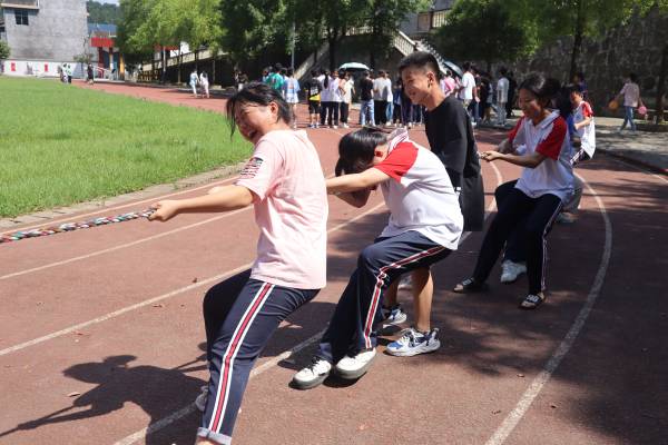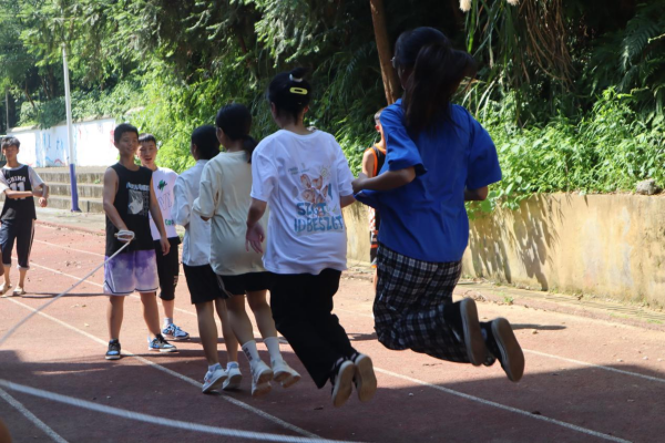 比赛过程中,调研组、课程组、生活组分别负责带领七年级、八年级、九年级,活动组成员谌宇旋、邓琛、张静帆分别担任七、八、九年级比赛的裁判。负责人们始终将学生健康安全放在首位,每进行一个项目后都会带领学生们到阴凉处休息,在发现个别学生表现出不适时第一时间将学生送回教室休息。赛场上,你追我赶,紧张激烈,响起一阵又一阵欢呼声和掌声。活动最后,由裁判宣布获奖队伍并合影留念。