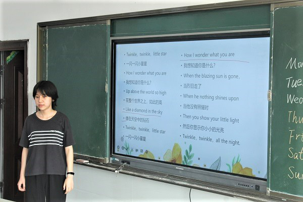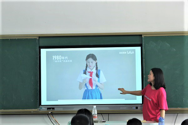 实践队将课程结构设计为树状,从美育这一核心出发,拓展到音乐、文学、生活、艺术等各个分枝,开展了书法鉴赏课、美育服饰课、诗词鉴赏课、手工绘画课等一系列课程。美育课堂上,主讲者屈青青采用音像结合、师生互动的教学方式,在吸引学生兴趣的同时提出相关问题,引导学生深入思考,保证课程目标的实现。课程讲解后主讲人屈青青留出一定时间,以开发学生的自主动手能力。