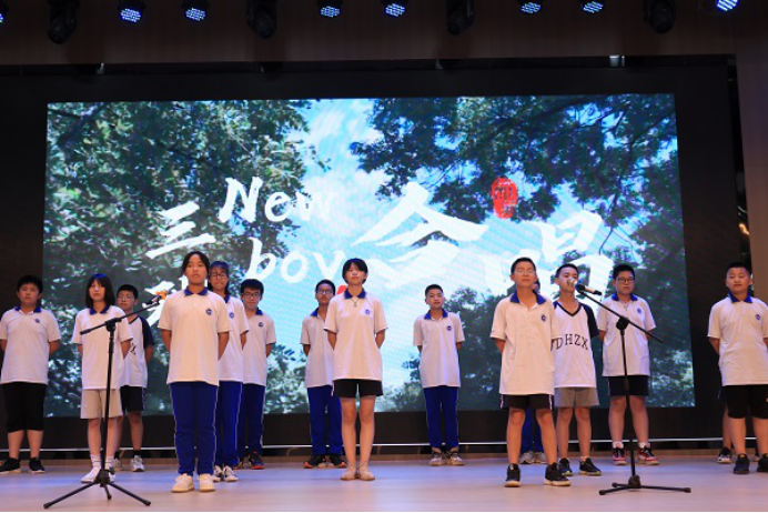 节目表演完毕,实践团成员代表王颖杰发言,分享在大湖中学的见闻和感受。他表示,无论是调皮气人还是认真听课的同学,他都很喜欢,因为那些都是正值青春少年的学生最真实的模样。他对学生说:“你们的脚下有坚实的土地,头上有浩瀚星空,希望你们一直保持好奇,保持期待,不磨灭心中的幻想与向往。”最后他表示,期待与同学们在未来相遇,期待再会时的少年永远如今日一般耀眼。