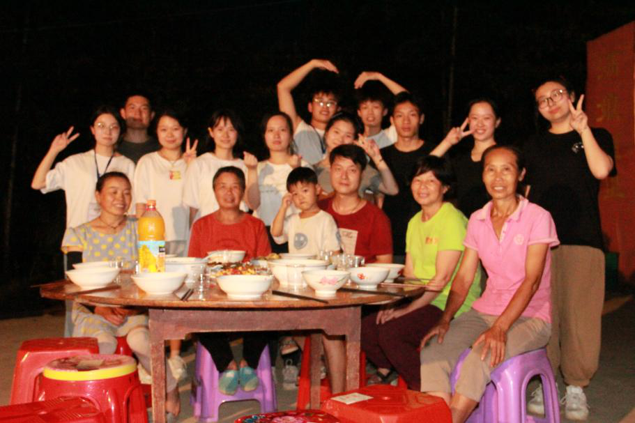 (通讯员 彭菲 汤凯文)7月10日,为进一步弘扬中华民族知恩图报的传统美德,践行社会主义核心价值观,工程与设计学院绿丝带协会暑期社会实践团在大飘村开展了回馈村民的活动,当天晚上实践团成员集体请“满娘屋里”负责人李俊杰、以及为我们提供住所的村民们吃饭,以此表达对他们这段时间悉心照顾的感恩之情。