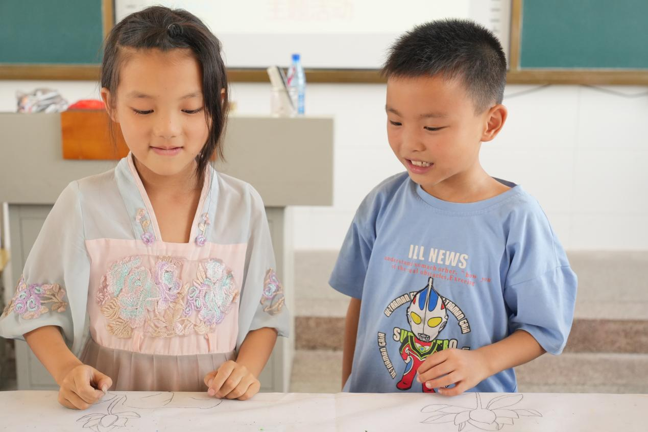 支教组成员与小朋友一起创作