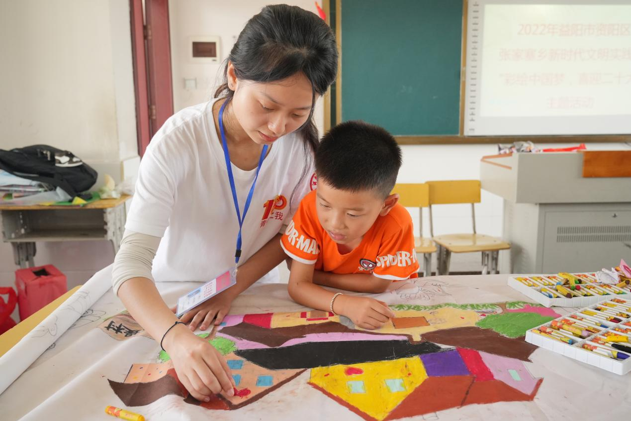 (通讯员 彭卓 李沛雅 肖敬怡)7月14日下午,树达学院赴益阳市张家塞乡乌龙堤村“青春之我”暑期社会实践团在乌龙堤村下资小学开展“彩绘中国梦,喜迎二十大”长卷画活动。此次活动分为游戏和绘画两个部分。