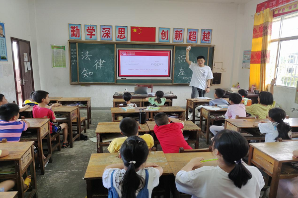 为增强同学们的法制观念,帮助他们系统了解法律知识,支教队员认真准备课件,通过图片和文字相结合的方式向大家普及法律的定义、小学生应会的法律知识、规范自我行为的方法和自我保护要领。沙晨和李德志以提问的方式为学生具体讲解不同方面法律知识的基本概念和特性。他们利用知识竞答增强知识讲座的趣味性,提高了同学的学习积极性。同学们上课时认真听讲,并在老师的带领下逐渐明白了法律知识的重要性。