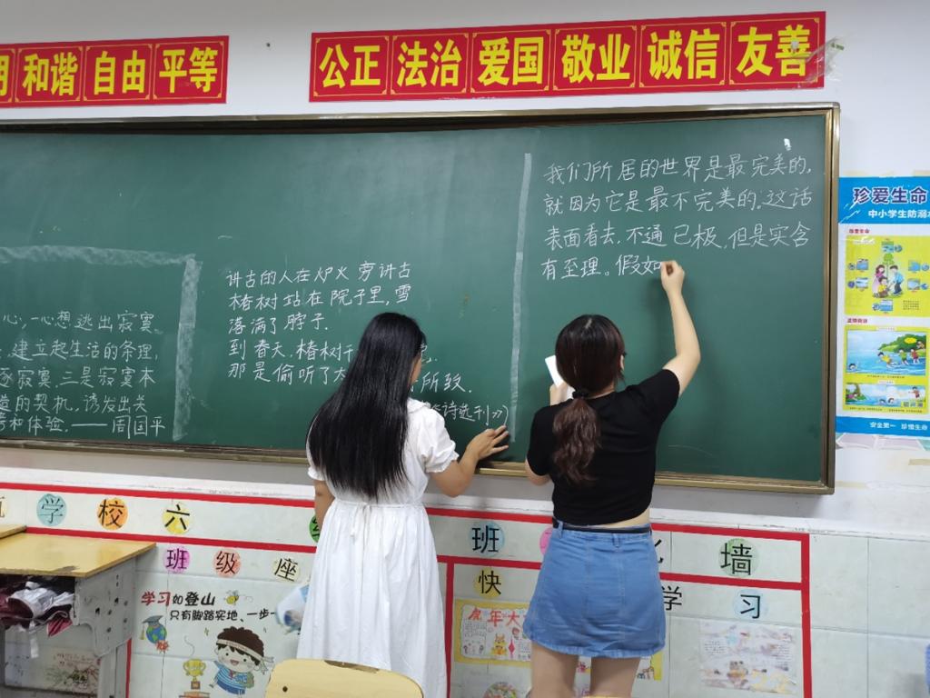 (通讯员 邹利 周美香)为了提升师范生书写技能,更好地践行师德创新之路,7月13日下午,太阳成集团tyc师范生师德创新实践项目,历史文化学院“从阅读中来,到田野中去——知行合一践行师德之路”团队在祁东县启航学校开展粉笔字大比拼活动,知行合一团队全员参与。