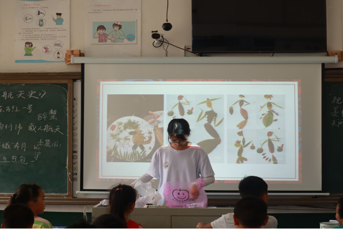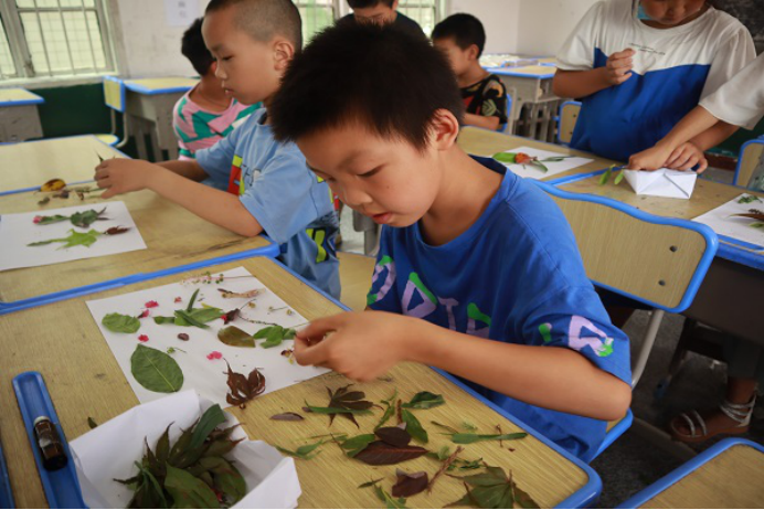 (通讯员 王九九 王琪璇 曾皓楠)7月11日上午,“跃动青春,助力乡兴”——数学与统计学院青年传媒中心赴邵阳市绥宁县暑期社会实践团(以下简称“实践团”)开展创意手工树叶绘画活动。此次活动由实践团成员徐欣蕾负责。
