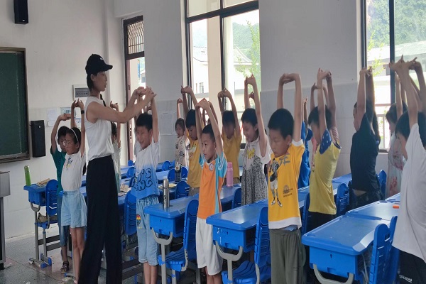 (通讯员 李蕾 张小雪)7月15日上午,我校“夏乡之源”社会实践队在慈利县金岩中学开展了一堂形体特色课程。此次课程面向三年级同学。