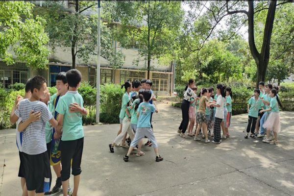 活动由一块钱五毛钱、指东指西、青蛙跳水三个游戏组成。活动前,吴桐语将所有学生分为四个小组,各小组在实践团其他队员的指导下完成游戏。游戏氛围积极向上,参与游戏的同学都热情高涨、积极参与。