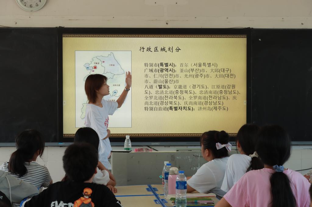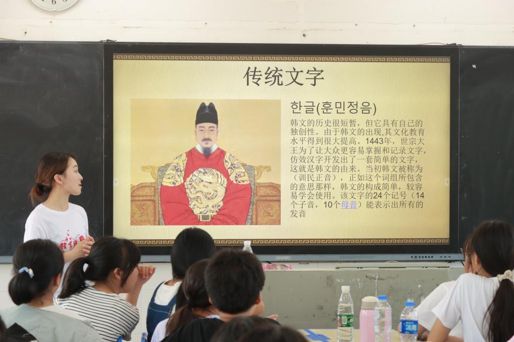 (通讯员 沈润 王坤 任俊吟)7月14日,外国语学院赴花垣四中实践团开展韩国国别文化课堂。此次课程由实践团成员王坤、崔善美负责。