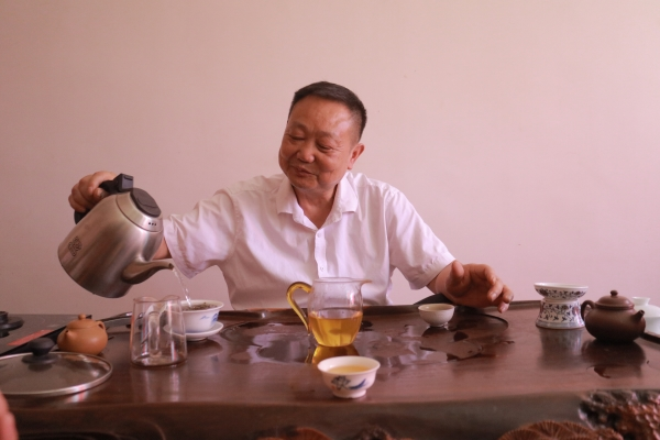 调研组采访了安马路茶厂厂长邓小明。走进邓小明的茶室,就着茶香,邓小明和大家谈起了安化黑茶的茶文化。