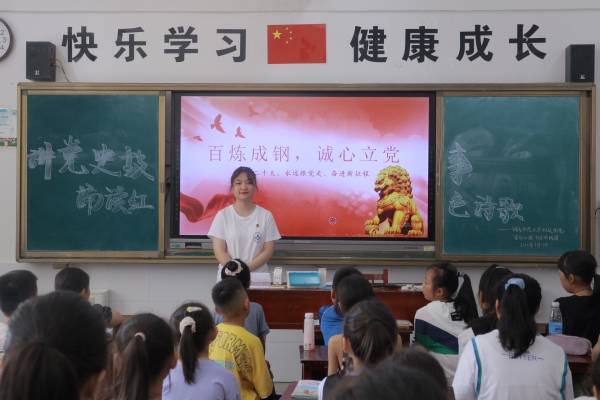 (通讯员 朱旺 伍欣 陈晶玲)7月11日上午,树达学院教师教育系三下乡“星与心源”代表队于马路镇完全小学开展以“讲党史故事,诵读红色诗歌”为主题的推广普通话活动。代表队队员吴婷婷担任主讲人。