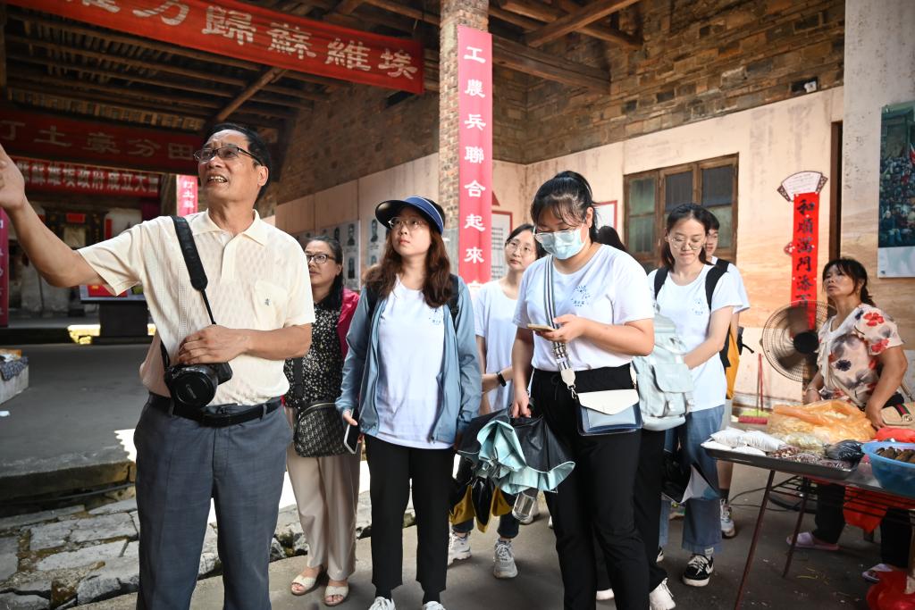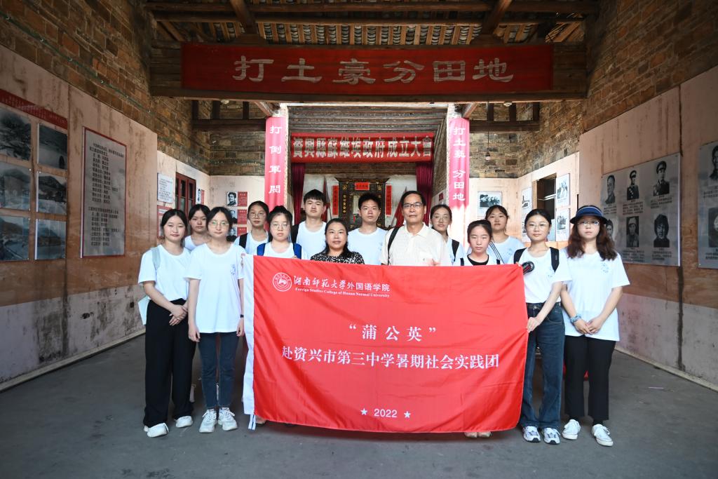 (通讯员 谢璐怡 龚佳倩)党的十八大以来,以习近平同志为核心的党中央高度重视各地红色资源的发掘与利用。为深入了解实践地资兴的红色革命故事,7月10日外国语学院赴资兴市第三中学暑期社会实践团拜访资兴市老干部局关心下一代工作委员会,在资兴市关心下一代工作委员会副秘书长曹含勇先生的详细介绍下了解资兴的红色革命历史。在关工委李少华书记和资兴三中蔡红芳老师的带领下,团队部分成员前往位于流华湾的红色教育基地——资兴县苏维埃政府旧址进行实地调研,深化感悟资兴人民的红色革命精神。