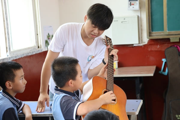 (通讯员 刘洋 邓志坤)7月11日上午,“沅梦之队“——我校教育科学学院赴益阳市沅江市暑期社会实践团成员刘洋在南竹山学校“逐梦”班开展吉他基础知识教学,旨在通过此课程提高孩子们对乐理知识的兴趣,打开孩子们通往音乐世界的大门。