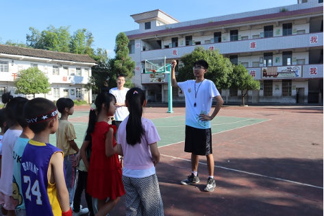 (通讯员 马文婧 曾皓楠)为了更好地贯彻落实教育部关于义务教育阶段“双减”政策和“五项管理”规定,丰富学生课余生活,全面提高学生体质健康水平。7月11日上午,“跃动青春,助力乡兴”——数学与统计学院青年传媒中心赴邵阳市绥宁县暑期社会实践团(以下简称“实践团”)于黄土矿镇学校篮球场开展“绳彩飞扬,助力双减”跳长绳比赛,此次比赛由实践团裁判员高俊威负责。