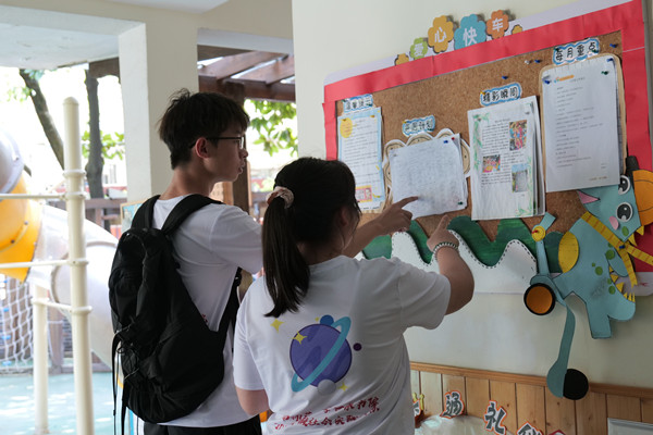 “造梦湘游”暑期社会实践团调研组成员走进望月湖幼儿园,以基础设施、宣传公示栏等实物为切入点获取相关信息,从各班课程活动表、每月工作重点清单中了解情况。针对教学活动开展等问题,调研组依此采访了不同年级的教师吴喜庆老师、龙方圆老师和向芊慧老师,询问教学方式、幼儿阶段的能力培养情况、以及对英语启蒙活动在幼儿园开展的态度等问题。教师们表示,幼儿园平日很少设计英语活动,英语只能作为娱乐性元素融入其他教学活动,符合寓教于乐的方式。