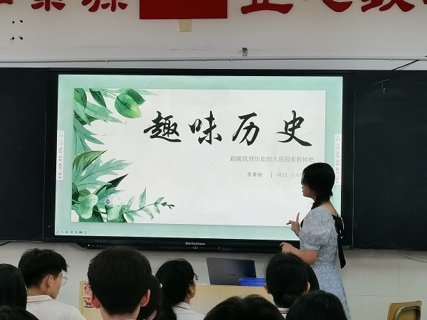 夏睿敏的“趣味历史”课,以长沙三所大学的历史沿革切入,从长沙临时大学到岳麓三校,将学生们熟知的中国近现代史与之相联系。并通过自己的大学经历,让大家了解到大学历史学的学科建设和教学内容。将大学的历史思维教学与中学的历史史实教学相对比,启发学生深入思考历史的意义。