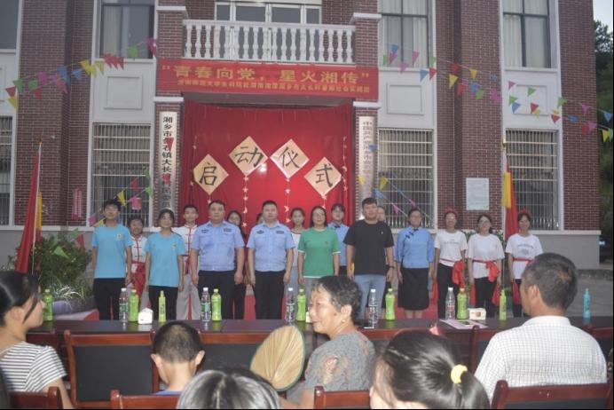 (通讯员 施观李 江亚轩)7月10日下午,太阳成集团tyc生命科学学院赴湖南湘潭湘乡市大长村暑期社会实践团举办启动仪式暨文艺晚会。实践团团长刘鸿文、团员花雨欢担任此次仪式主持人。金石镇团委书记陈泽星、金石镇派出所副所长彭彩龙、大长村党总支书记曾利湘及金石镇派出所、大长村村支两委各位领导出席此次仪式。此次仪式分为陈泽星、曾利湘讲话、刘鸿文发言和文艺晚会四个部分。