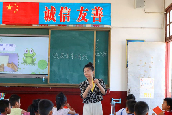 (通讯员 吴菲 欧阳宸敏)7月10日上午,为激发学生的学习兴趣、锻炼学生的动手实践能力以及培养学生的自主意识和创新意识。“沅梦之队”——我校教育科学学院赴益阳市沅江市暑期社会实践团(以下简称“实践团”)成员吴菲在南竹山学校“小太阳”班开展“顽皮一夏:青蛙折纸”趣味手工课程。