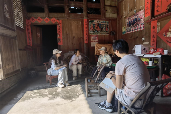 上午,由5名队员组成的调研小组到达白竹坪村,对当地村民进行了访谈,访谈内容主要为妇女歌、红色娘子军、土地革命的相关信息等;而后,队员们在白竹坪村村委会对村支书余正威进行了专访,主要了解了村委会构成部门、村规民约以及土地革命、妇女歌等红色历史文化的相关信息。