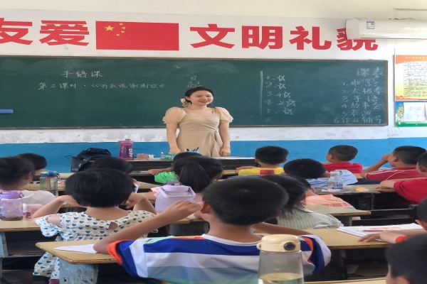 (通讯员 蔡羽萌 张俊 梁子琦)7月10日上午,教育科学学院赴岳阳市平江县暑期社会实践团成员彭潇然于南江镇百合村上坪小学开设趣味手语课,为一二年级的同学们拓展手语知识,提高审美素养,培养高尚情操。