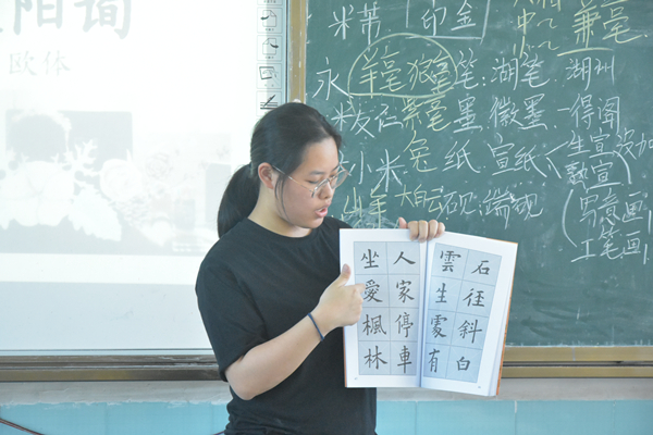 许晏嘉向同学们展示楷书