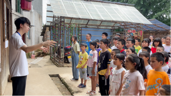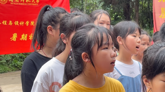 7月7日上午,姚宇彤带领同学们唱《我和我的祖国》,这首歌旋律舒展、优美,与细腻而真挚的歌词浑然一体,是全国人民喜欢的一首歌,表达了对祖国的热爱之情。王亚沛带领同学唱《万疆》,希望向同学们传达“吾国万疆,大爱无疆”的宽广胸怀。