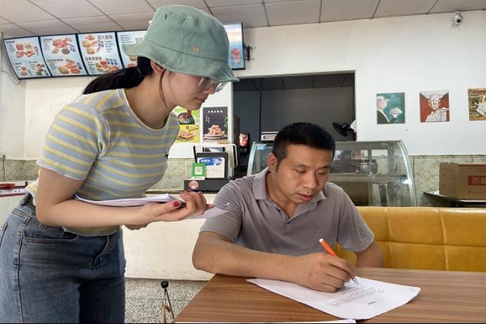 文婕妤采访商店老板并填写问卷