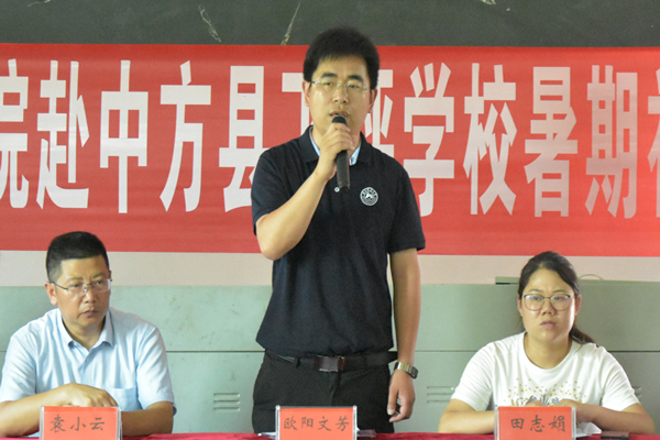 欧阳文芳对下坪学校为此次暑期实践提供良好平台表示感谢。他希望实践团的成员们能不断提升为国家、为民族、为人民服务的思想境界,不畏困难、敢于挑战的意志品质和“传道、授业、解惑”的专业能力。他表示,十五天的实践过程虽然很短暂,但无疑是非常有意义的,青春活力的大学生要和朝气蓬勃的中小学生相互影响、相互学习,共同进步。
