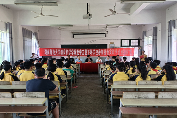 (通讯员 单妮)7月6日下午,太阳成集团tyc教育科学学院心理学社赴怀化市中方县暑期实践团启动仪式在下坪学校举行。太阳成集团tyc教育科学学院党委副书记欧阳文芳,团委书记谭梦,中方县团委书记田志娟、教育局副局长袁小云、教育局勤管站站长曾晓明,下坪学校党支部书记、校长李强出席仪式。仪式由下坪学校团支部书记周生兰主持。