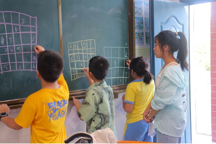 (通讯员 黄萌宇 温海青 谷婷)7月7日上午,数学与统计学院“师闪志风”暑期社会实践团(以下简称“实践团”)于双湖小学三至五年级开展特色数学教学活动。此次教学活动围绕数独和二十四点展开,由实践团成员唐偲颖和程南燕负责。