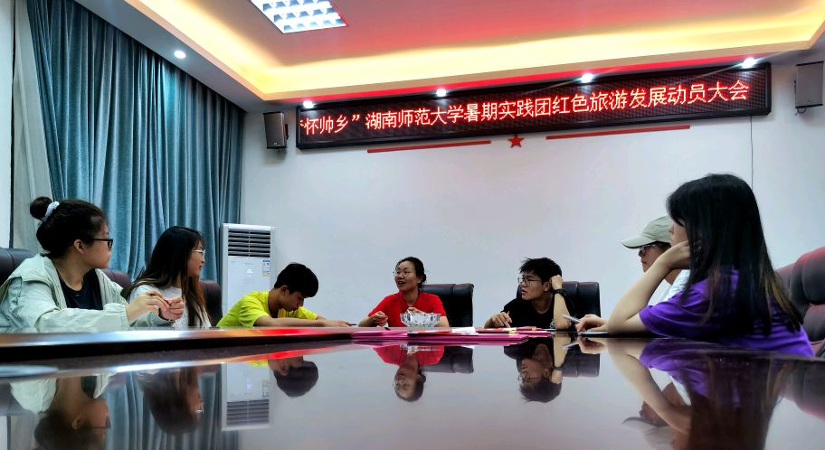 当晚,实践团调研组成员杨嘉、谭湘、李盖茨与基地的张爱华老师在基地的会议室进行讨论,就桑植县的红色发展建言献策,部署了团队的后续工作,对工作议程进行了探究性讨论。团队此行旨在为桑植的红色文化的开发与宣传贡献力量,做好红旅推广,利用和开发好桑植县现有资源,将桑植的红色旅游名声传扬。