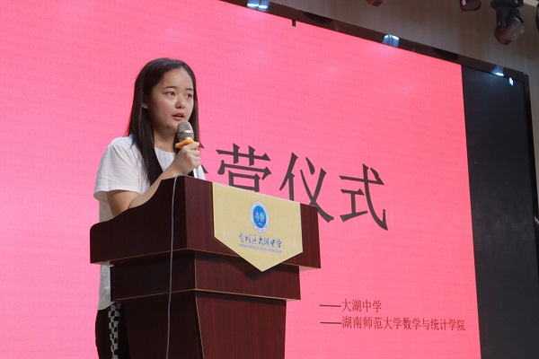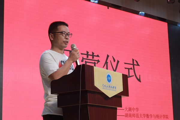 (通讯员 王小玉 唐思琦 梁天祺)7月5日上午,数学与统计学院“爱在大湖”赴长沙市望城区大湖中学暑期社会实践团(以下简称“实践团”)于大湖中学综合楼教室举行夏令营开营仪式。此次活动由大湖中学联合“爱在大湖”实践团组织开展,实践团成员朱涵担任主持人。大湖中学教务主任陈世超、年级组长秦燕武参加此次活动。