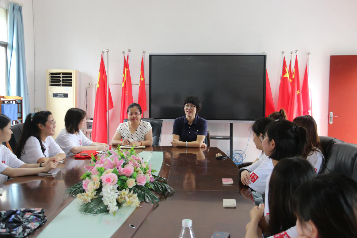 长岭中心小学校长付新春向成员们简要介绍了学校整体状况与学生情况,并与队员们进行了亲切交流,表达了对此次三下乡活动的期待和展望。