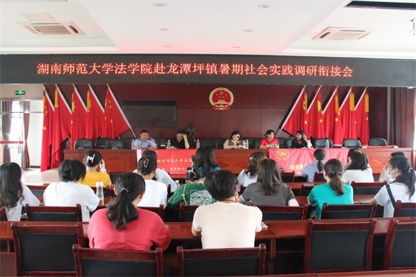(通讯员 唐铭泽 陈文杰 黄洁)7月4日上午,法学院赴龙潭坪镇暑期社会调研团在龙潭坪镇政府报告厅参加调研衔接会。龙潭坪镇党委书记谷成凡,组织部长魏丽娜,张家界市作协代表熊玉平,法学院带队老师罗静伟,许华燕参加会议,会议由龙潭坪镇司法所所长谷辉主持。