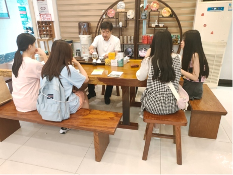 活动开始,实践团队员按顺序进入“飘香全球”“千年茶韵”等展厅了解了茉莉花茶的发展历史、制作工艺和创新产品,并体验了制茶流程。随后,队员们与公司工作人员展开座谈会,讨论了茉莉花茶的弘扬与传播途径、发展方向和战略措施,并提供相关建议。