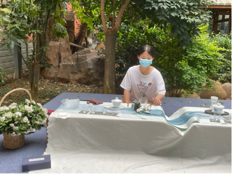 队员正在体验泡茶过程