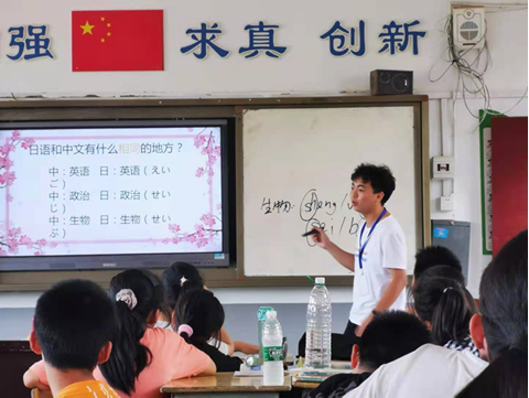 (通讯员 尹鑫 邵天艺 黄紫珊)7月23号下午,为了增进学生对中国传统文化和日本文化的认识,培养学生持之以恒的学习态度,树立正确的文化观念,我校公共管理学院政治学系关爱在行动支教队在湖南省岳阳市湘阴县六塘中学开展了日语课程。此次课程由关爱在行动支教队员王浩宇授课,授课对象是六塘中学预初二班级的学生。