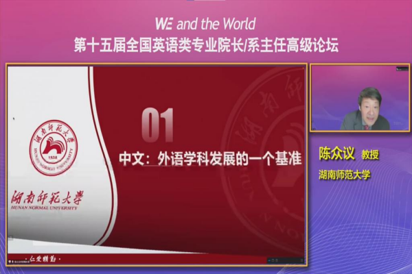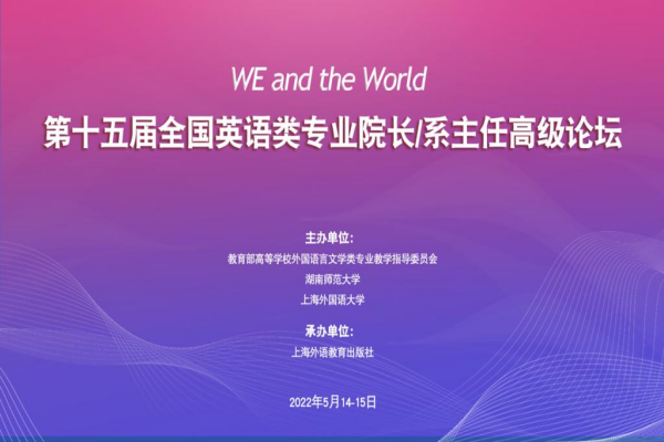 5月14日上午,第十五届全国英语类专业院长/系主任高级论坛在线上拉开帷幕。本次论坛以“WE and the World”为主题,由教育部高等学校外国语言文学类专业教学指导委员会、上海外国语大学与我校联合主办。教育部高等学校外国语言文学专业教学指导委员会主任委员孙有中,上海外国语大学校长李岩松,我校党委书记、欧洲科学院院士蒋洪新等出席论坛开幕式并致辞,论坛开幕式由上海外国语大学副校长查明建教授主持。