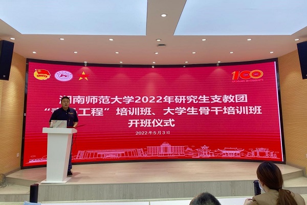 (通讯员 李子涵 李锦怡)青春心向党,建功时代。5月3日下午,学校团委在励德楼举行2022年研究生支教团“青马工程”培训班、大学生骨干培训班开班仪式。学校党校常务副校长、党委组织部副部长袁道香,校团委机关全体老师参加。校团委书记陈天嵩主持开班仪式。