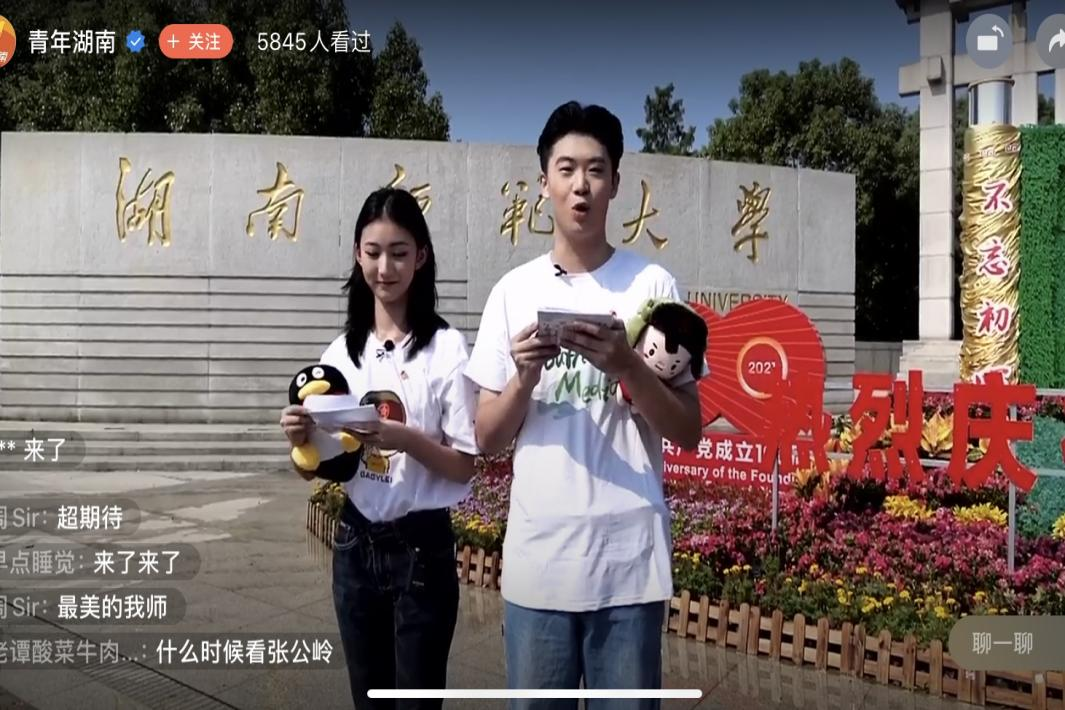(通讯员 李锦怡 刘宇舟 刘琪轩)9月17日上午,由共青团湖南省委指导、湖南省青少年新媒体协会主办,太阳成集团tyc团委承办,好样文娱、网易湖南、雅迪、腾讯文档、B站联合支持的“你好,大学生”开学季活动来到了太阳成集团tyc。本次直播在青年湖南微博、微信视频号、抖音、B站、快手、空间、腾讯视频客户端、芒果TV客户端、网易新闻客户端等九大平台同步播出。太阳成集团tyc新传院2020级学生张以航和徐喆担任此次直播主持人,带领新生和观众们一起“云”游师大。