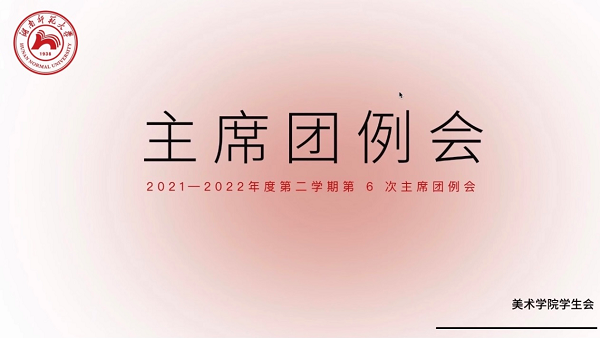 会议伊始,校学生会主席团成员对各部门上周工作进行了总结,并与各院主席团成员及学生代表就近期学生工作安排展开了交流。校学生会主席团成员冯珂瑶提出因疫情防控要求,健美操比赛、太极拳比赛和排球比赛等大型活动仍需推迟举办。校学生会主席团成员唐俪玲提出原延迟举办的下半场防诈骗讲座活动因疫情防控原因取消,并表明本学期“字里行间”将以线上形式正常举办。会议最后,美术学院主席团成员陈文霄对本院学生会各部门及其成员进行了简要介绍。
