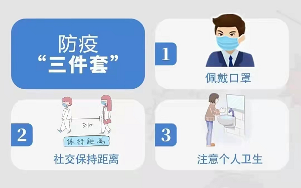 1.请同学们科学佩戴口罩。在室内室外等人群密集场合要佩戴口罩,特别是教室内上课要坚持正确佩戴口罩,汗湿后要及时更换,坚决做到疫情不退、口罩不摘。
