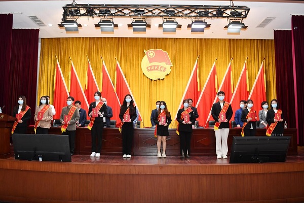 主席台就座嘉宾分别为获奖先进集体及个人颁奖。“十佳共青团先进工作者”“十佳志愿服务团队”获奖代表先后发言。