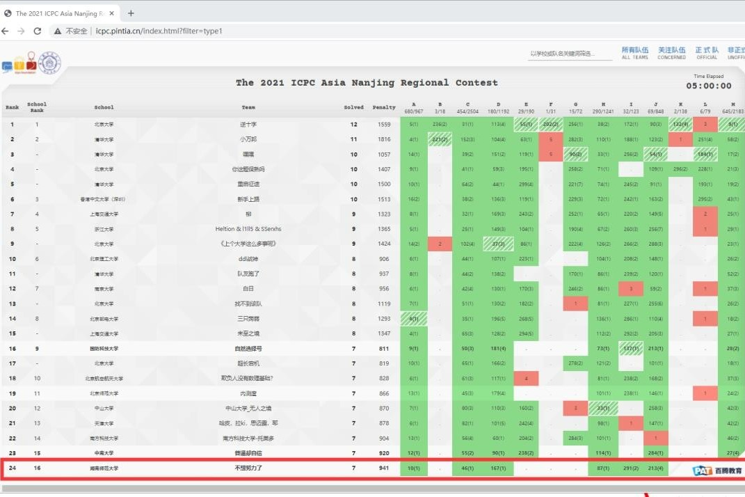 ICPC南京站比赛结果