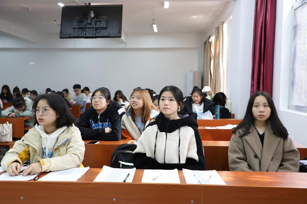 戴雪仪向同学们介绍视频的制作步骤、技巧运用以及主题的确定和剧本的撰写。欧阳壮以字幕的排版与设计为主题,通过视频向同学们展示如何选择合适的字幕以增添视频的美感。李婷介绍视频制作中关键帧的作用及运用。她通过实际操作进行演示向同学们展示图片基础拼接、运镜效果及进阶效果连用的操作方法。