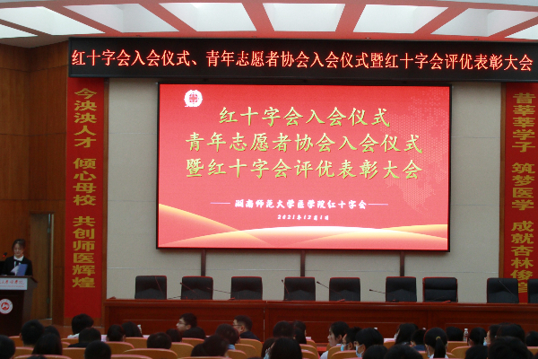 (通讯员 廖映 陈禾 曾月槟)12月1日中午,由医学院团委青年志愿者工作部组织的红十字会入会仪式、青年志愿者协会入会仪式暨红十字会评优表彰大会在仁医楼学术报告厅举行。长沙市红十字志愿服务队副理事长陈世明、院青年传媒中心指老师罗宇涛,学生会指导老师郜江洪、学生社团管理服务中心指导老师林灿英以及院四大团学系统执行负责人出席此次活动,21级部分新生参加了此次活动。